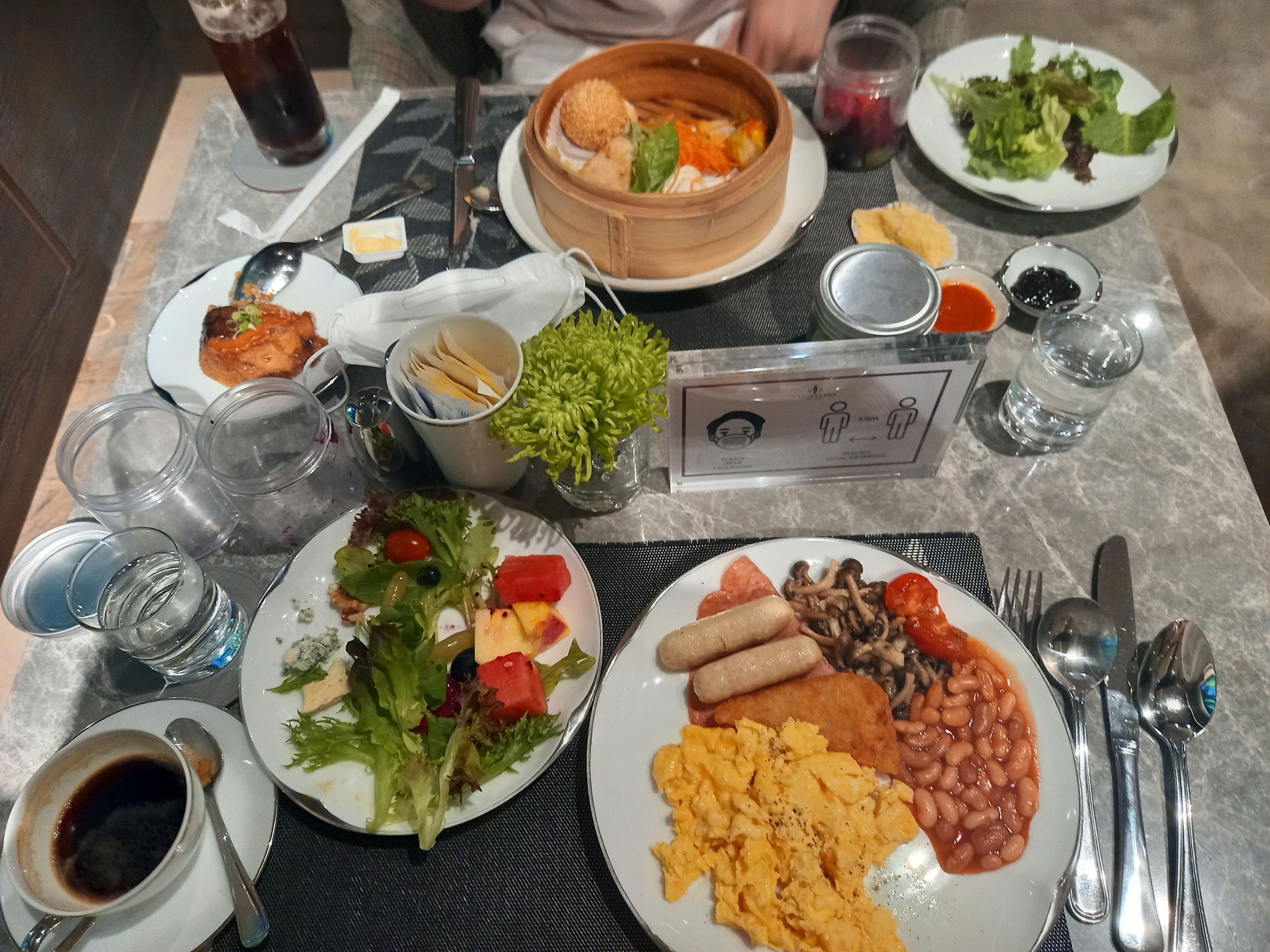 At the lounge, they serve breakfast including Main menus you need to order and some buffet food(snacks, yogurt,breads,fruits, etc).