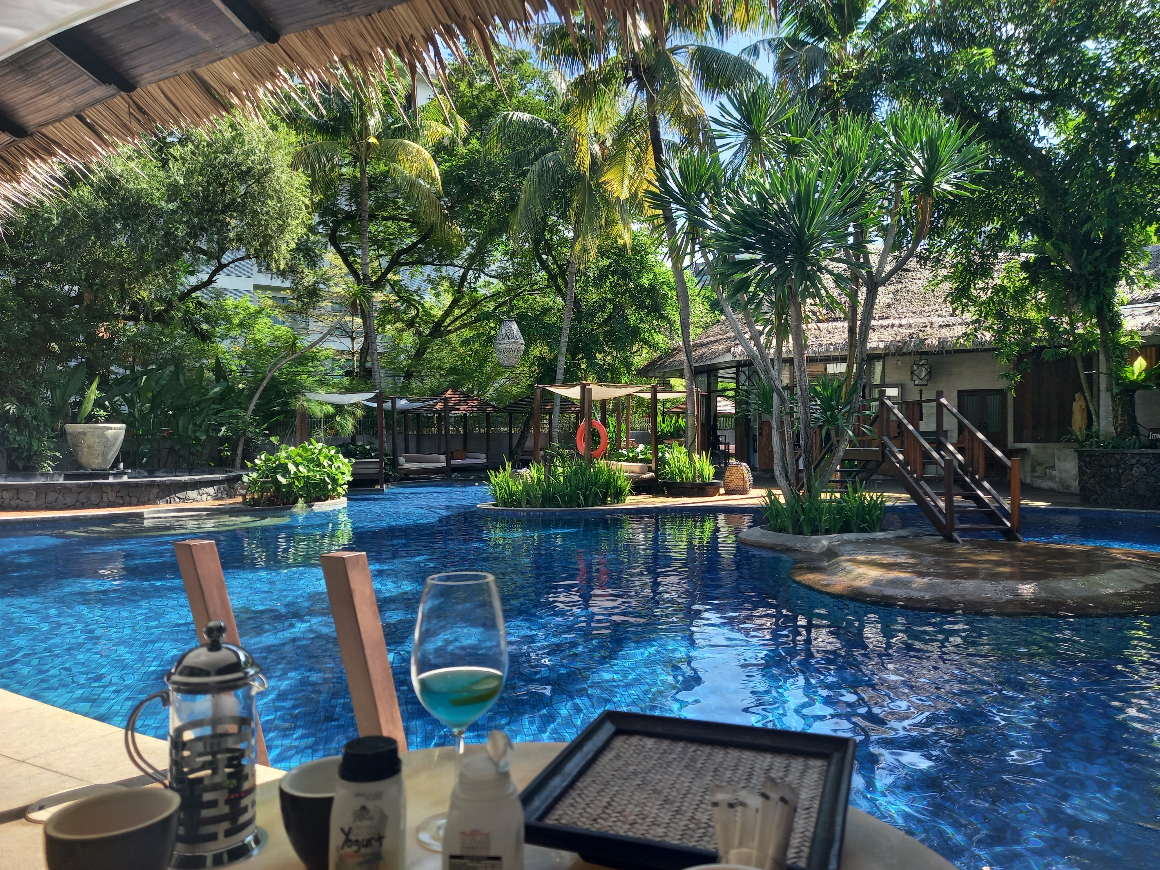 수영장 물도 그렇게 차갑지 않고, 도심 속에서 발리에 온 듯한? 자연을 느끼며 힐링할 수 있는 몇 안 되는 숙소 중 하나다.